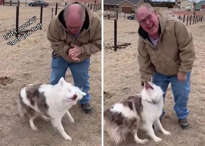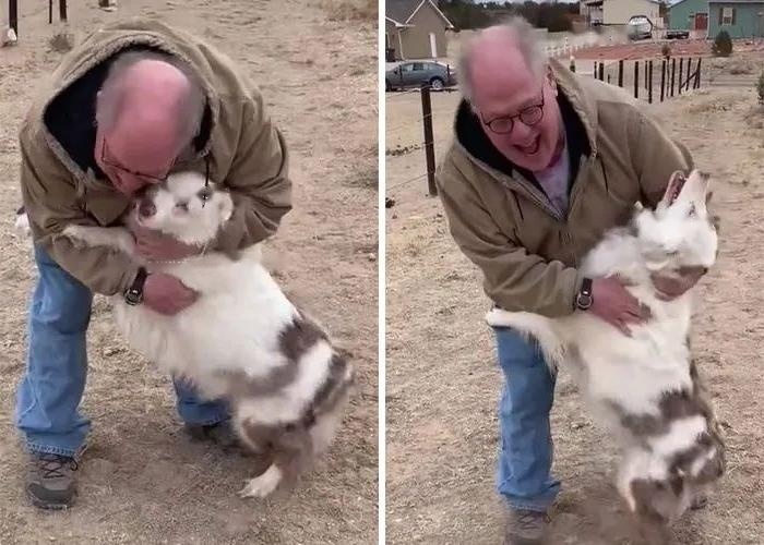 It jumped out and got into Grandpa's arms, wagging its tail happily, jumping up and down around him, and kept licking his cheeks...