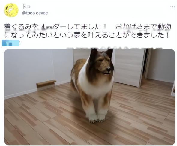 After repeatedly communicating with Toco about the desired effect, the special styling studio took 40 days to create a realistic border cowling costume. Toco was very satisfied after receiving the clothes and paid 2 million yen for the custom-made clothes. What the studio did not expect was that Toco made this suit, not for collection or advertising, but to turn himself into a dog.