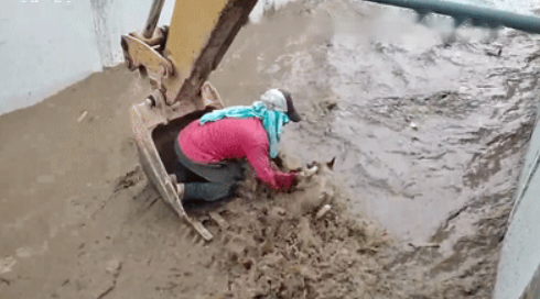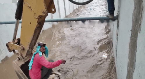 The workers were working on construction at the time, and then they received a call from an upstream colleague saying that a dog had been washed away. After everyone learned the news, they immediately started Ready to start saving dogs.