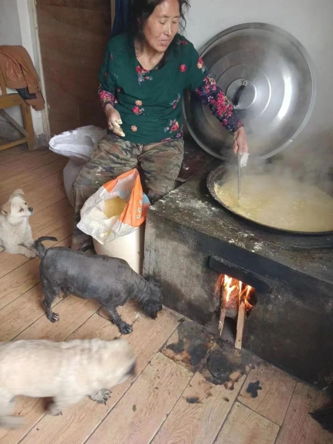 ▲Aunt Song uses only The rest of the cornmeal was boiled in a pot.