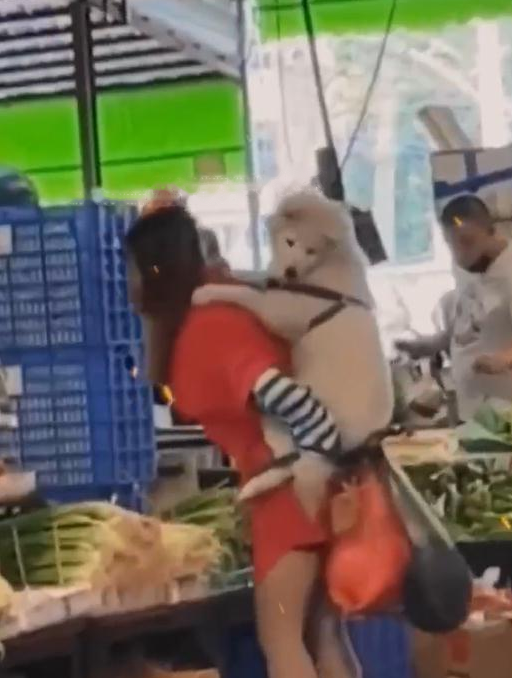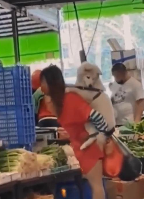 According to netizens, a woman went to the vegetable market to buy vegetables with a dog. What is surprising is that the dog was not led by her, but was carried on her back by her owner. From the picture, we can see that this is a very lively vegetable market where people come and go. Usually, everyone buys vegetables and chats. There is nothing new, but this day, a remarkable woman appeared. . The woman in a red dress came to the vegetable market to buy vegetables, carrying a lot of vegetables in her hands, which were not light, but the woman did not stop buying. She herself is not afraid of the eyes of other people in the market. The reason why she is so eye-catching is because she carries her dog on her back.