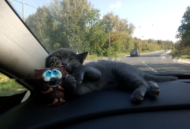 Umka was taken too early from the mother cat, when it was less than a month old, Olga put it in the car and set off immediately, Since then, the car has become Umka's new home.