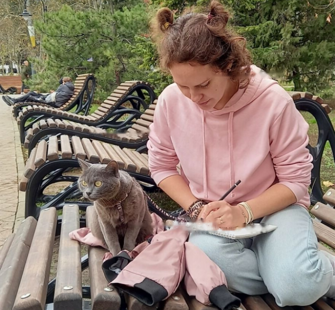 Cats who have seen the world tend to be more calm when they get along with people. Umka, who is not afraid of people, often has outbreaks of social cow disease. Wherever he goes, he feels like he is in his home field, Olga And Sergey sees it even more as a furry talisman. Olga often needs to sketch outdoors, and Umka is always by his side. Whenever she finds beautiful scenery, Olga will stop and try to record with a brush. Umka, who is sitting quietly on the side, can always attract the attention of passers-by. However, thanks to the attractive Um Card, Olga can meet a lot of great and interesting people.