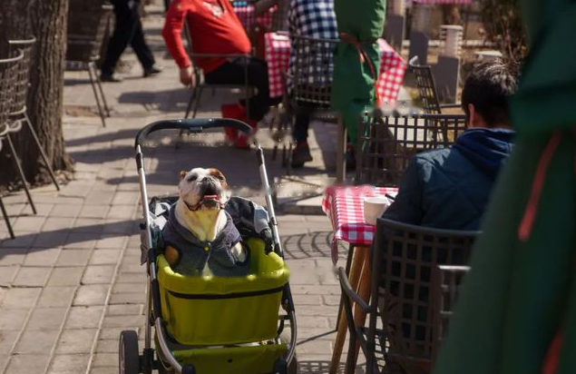 ▲On March 6, 2022, a pet dog accompanies its owner for a meal in the 798 Art District in Beijing. Photo by Beijing News reporter Wang Zicheng