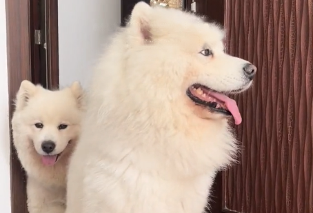 The family of Samoyed hug and tweet is a Douyin blogger. He has 2 Samoyeds, one is named hug and the other is named tweet. Huo Huo is a big warm man, and Chiu Chiu is its little wife, so they are husband and wife relationship.