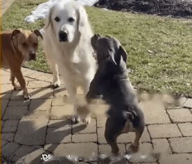 The puppies were overjoyed to see Grandpa Oliver, sniffing his butt to say hello, and jumping around him.