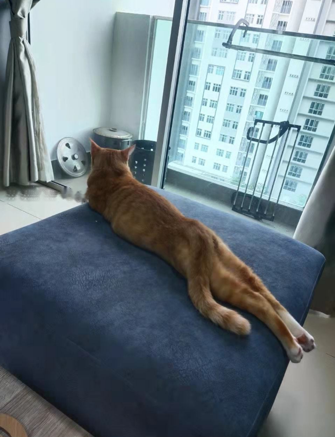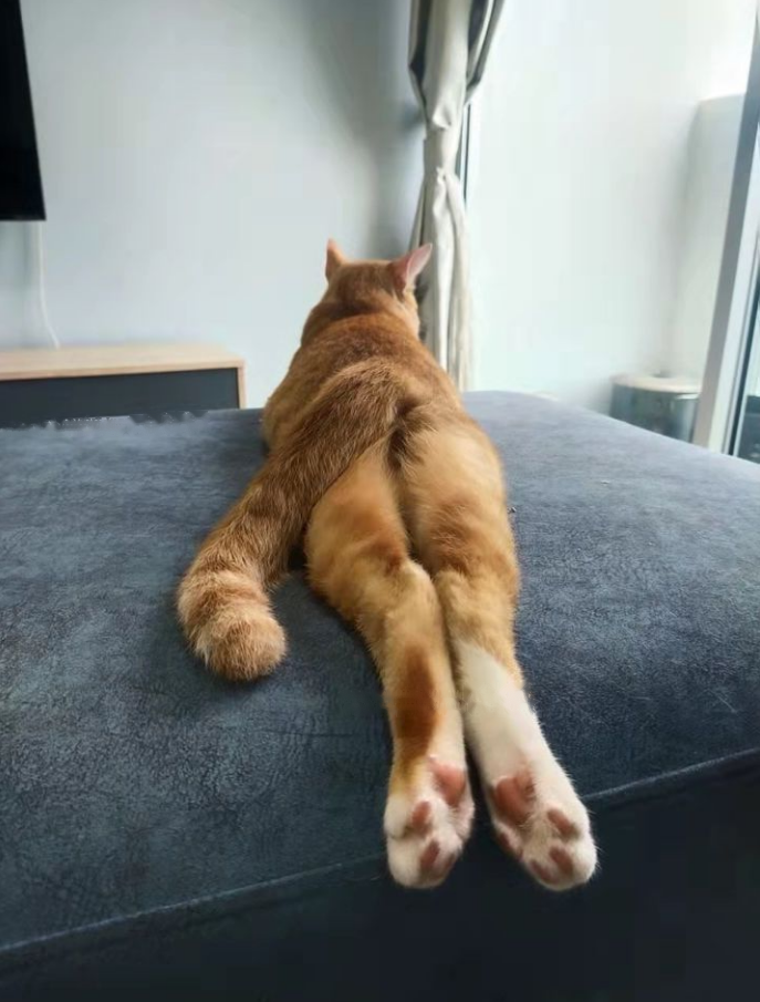 It is impolite to expose the cat's real leg length. Big orange will wink at you and forget about the appearance of sitting on it.