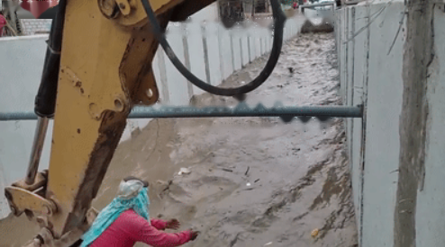 The workers were working on construction at the time, and then they received a call from an upstream colleague saying that a dog had been washed away. After everyone learned the news, they immediately started Ready to start saving dogs.