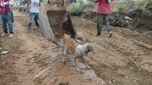 and the dog wanted to bite something to take advantage of it in panic, but after the big brother caught it, it also realized that it was rescued, so it didn't cooperate.