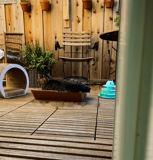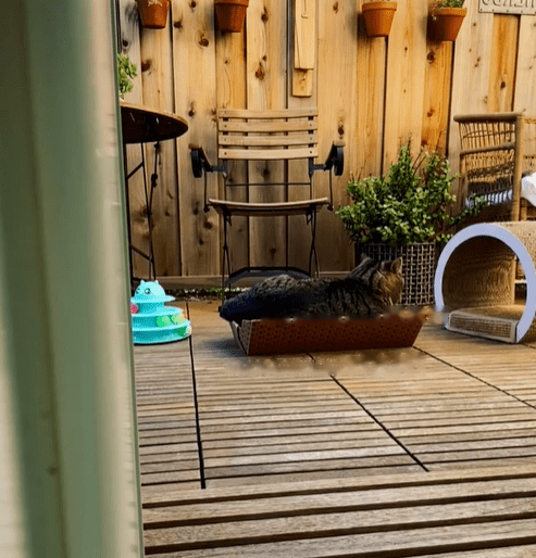 One morning not long after, Byrne heard movement in the flower pots outside. When she looked out the window, she saw a big, old tabby cat on the fence.