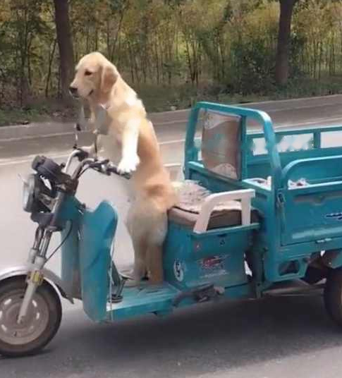 Everyone knows that the most common ones in the countryside are Chinese pastoral dogs, which are commonly known as local dogs. They can not only watch the house, but are also very obedient and loyal. The guy started out with several local dogs. Yeah, but I found that it was obviously not good enough to bring into the city, so the guy started to raise some more expensive dogs, not only a golden retriever, but also training the golden retriever since he was a child. Now it can be said that It's like this dog rides a tricycle. This is simply against the sky. Many people don't know how to ride this tricycle, but a dog is obedient to the management of this tricycle. In fact, there is another bright spot here. Go back to the previous picture and see if there is still a little guy behind the tricycle, haha, this is a little guy who can stand and walk.