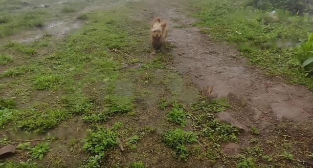 Chengdu group wanted to go out for a green hike and were about to hike into the mountains, but it suddenly rained halfway, so they had to find a place to take shelter from the rain. The dog, it is very quiet, just squatting in front of the crowd, probably wanting to beg for some food, so everyone distributed some food to the puppy.