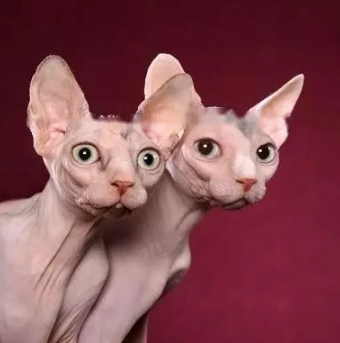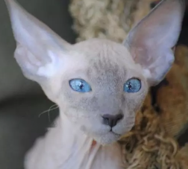 Peter Bald cat It looks a bit similar to the hairless cat, it should be a distant relative, the fine hair is close to the skin, the big ears and short nose, a bit like an alien (it can also be said to be very similar).